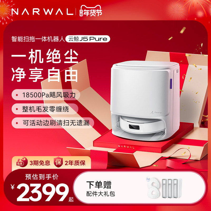 【年货节】云鲸J5Pure智能洗扫拖一体扫地机器人毛发0缠绕自清洁