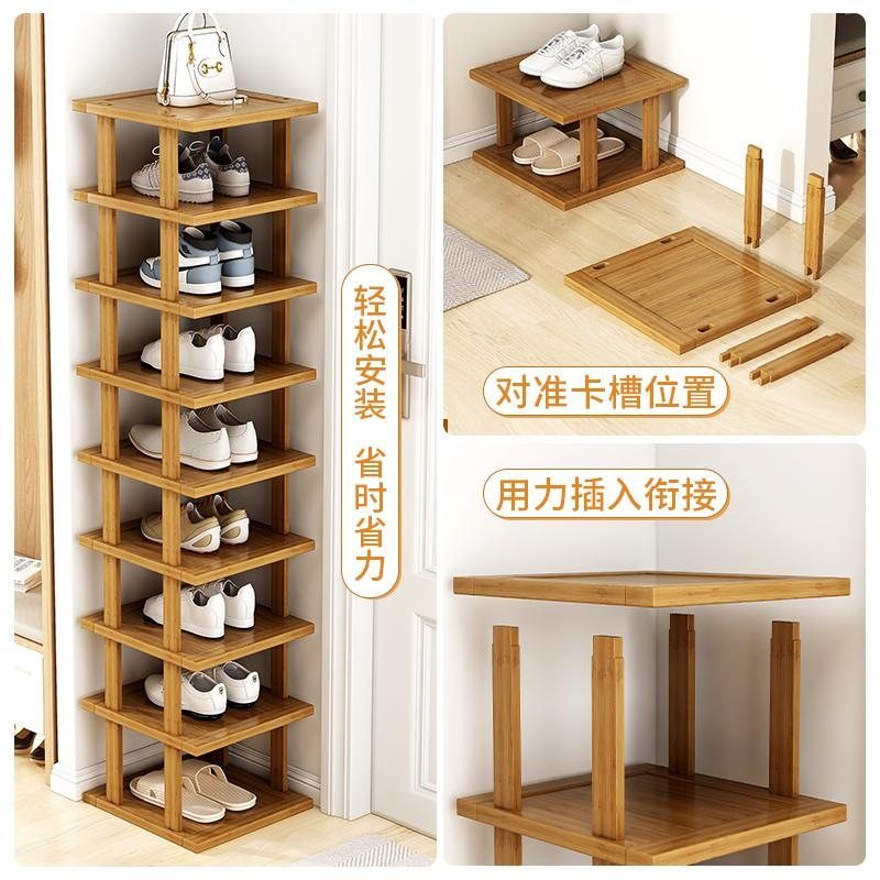 入户小窄鞋架多层家用门口置物架子简易楠竹鞋子收纳神器不占空间
