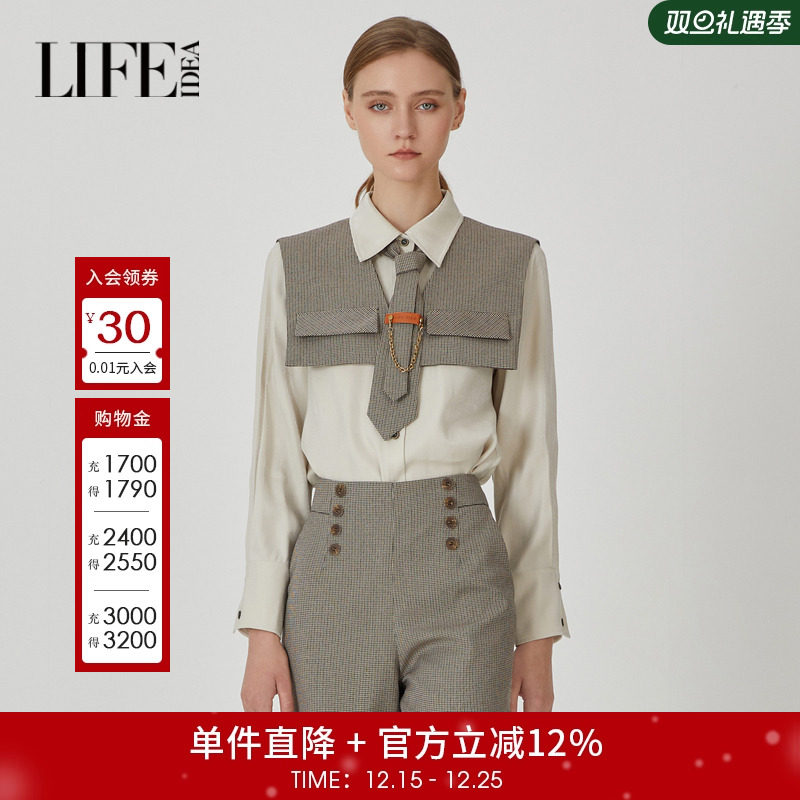 莱芙艾迪儿品牌女装秋冬新款通勤时尚拼接设计小众衬衫女修身上衣