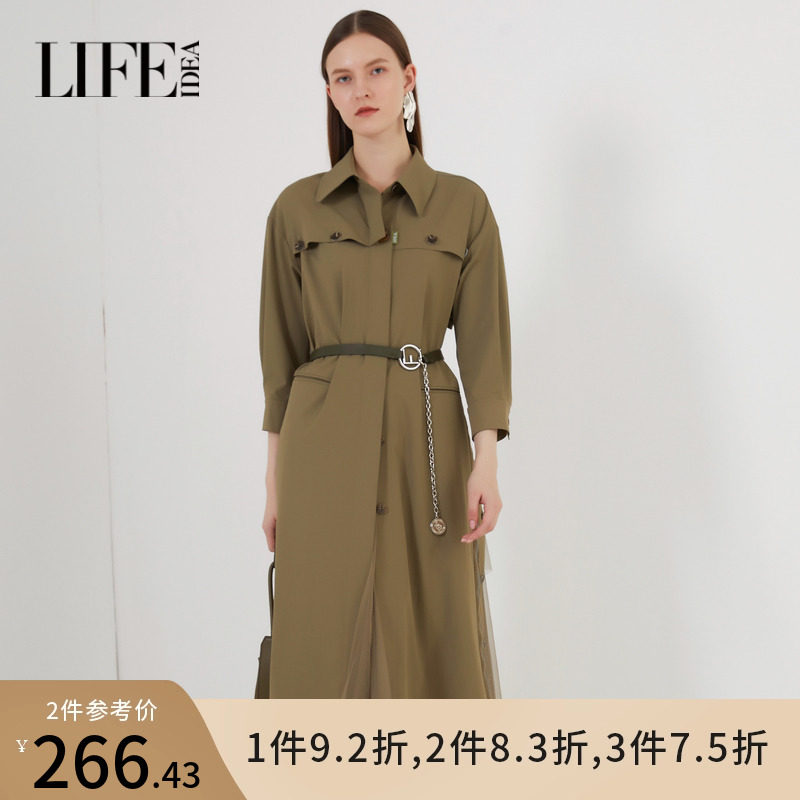 莱芙艾迪儿品牌女装衬衫式风衣春季新款复古气质修身收腰显瘦外套