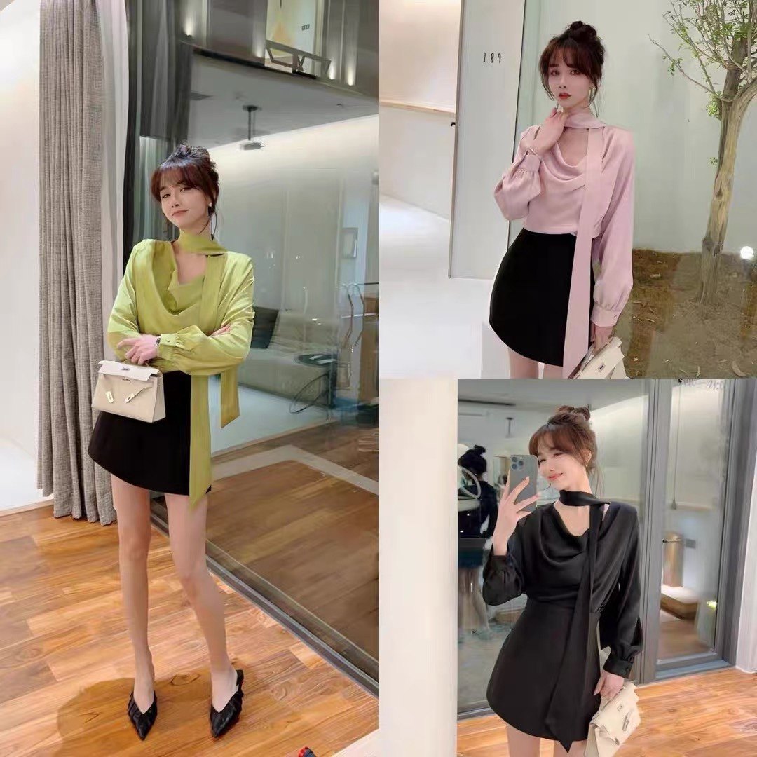 卡卡女装官方旗舰正品早春新款法式气质高级感垂领飘带缎面衬衫女