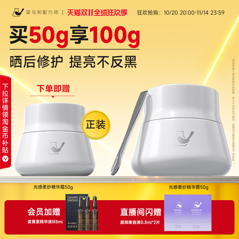 【双11现货】菜鸟和配方师光感柔纱精华霜补水保湿舒缓提亮滋润