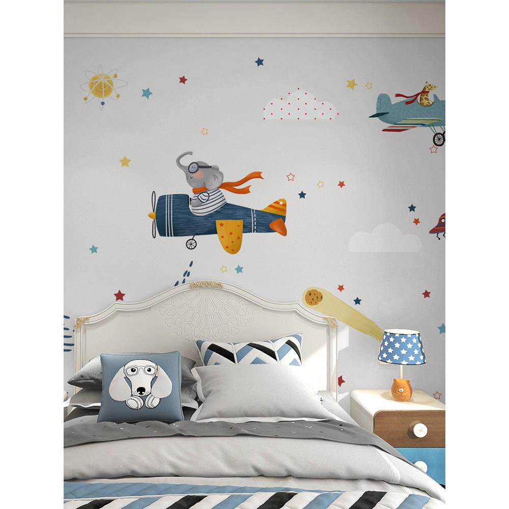 壁纸儿童房男孩卡通飞机墙纸卧室墙布壁画定制壁布背景墙墙面装饰