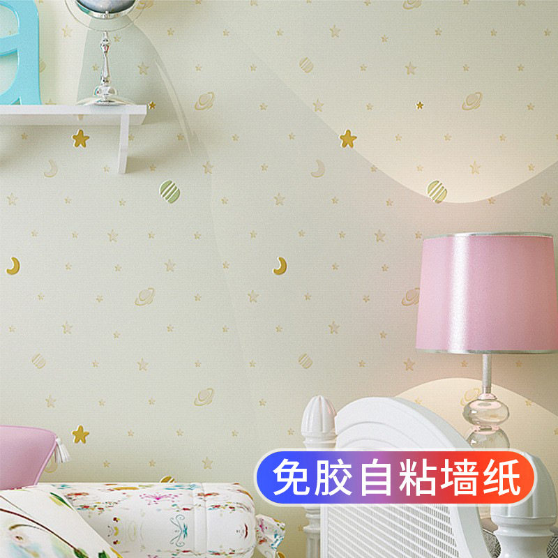 环保儿童房间自粘墙纸无甲醛卧室女孩男孩家用加厚墙贴纸自贴壁纸