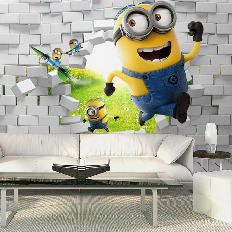 极速3D小黄人男孩女孩儿童房墙布壁纸5D现代简约T卡通主题背景墙