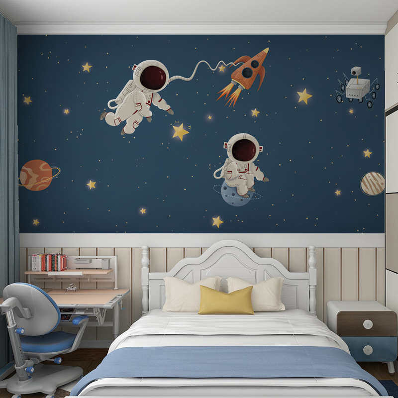 墙纸儿童房男孩墙布壁纸卧室太空星空壁布背景墙定制壁画墙面装饰