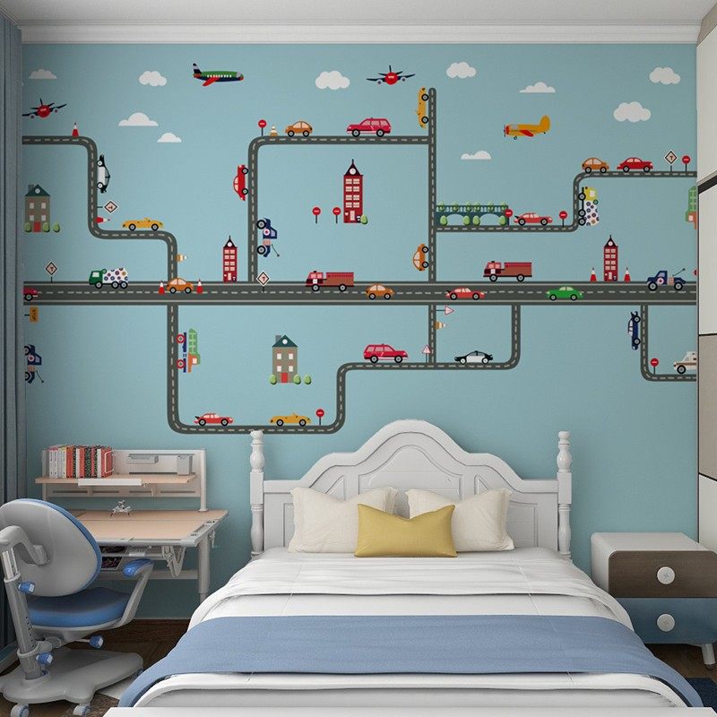 墙纸儿童房男孩壁布背景墙墙布z2021年新款卧室床头壁画汽车壁纸