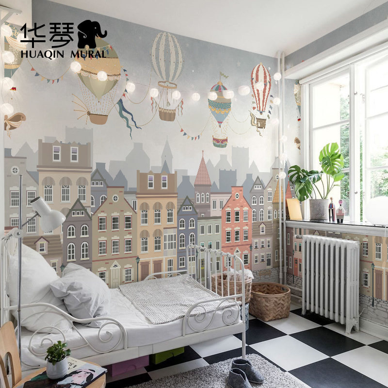 儿童房墙纸定制男孩女孩温馨卧室房D间卡通背景墙布环保无甲醛壁