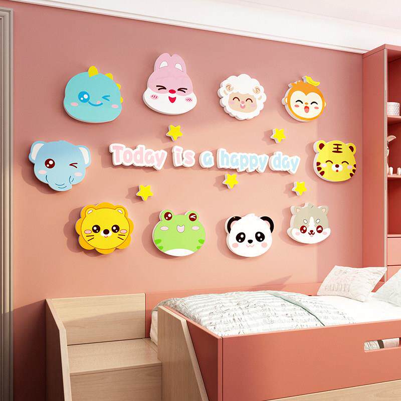 儿童房墙面装饰男孩女孩公主房间布置多巴胺床头卧室卡通壁纸贴画