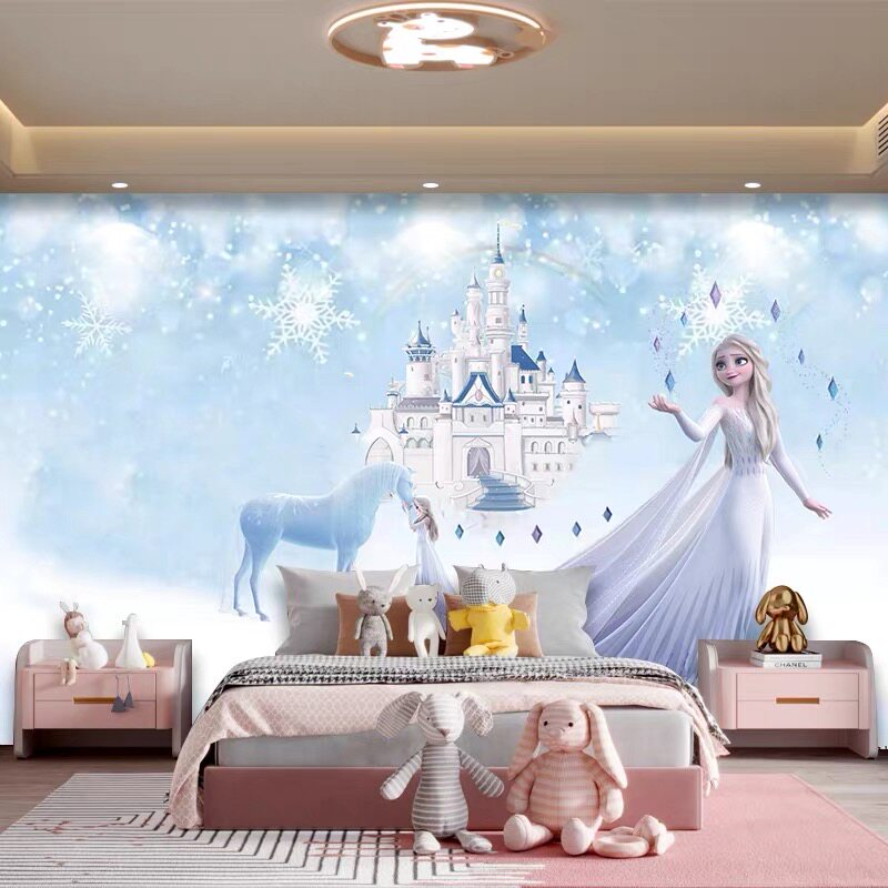 卡通儿童房墙纸艾爱莎公主房墙布男孩女孩卧室床头背景墙壁纸壁画