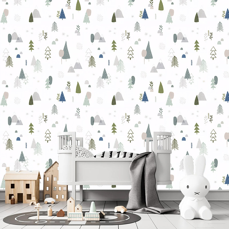北欧小清新森林儿童房墙纸男孩女孩卧室满屋卧室壁纸墙布定制壁画