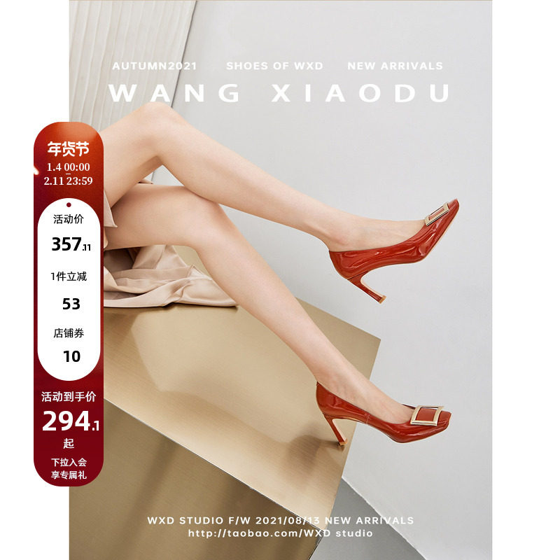 【王小毒】纵你欢心●太女人7cm方头漆皮细高跟鞋女真皮增高单鞋