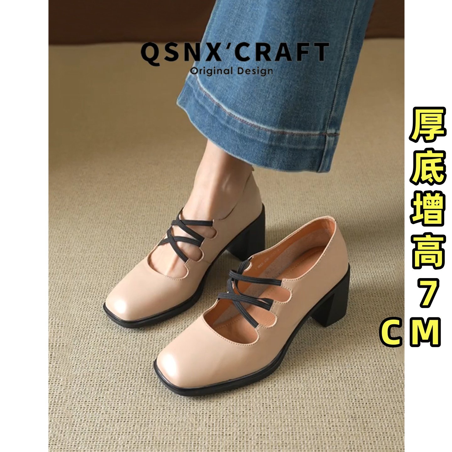 牛皮跟高2.5厘米和3.5厘米和4.5厘米 新款V口小方头百搭网红单鞋