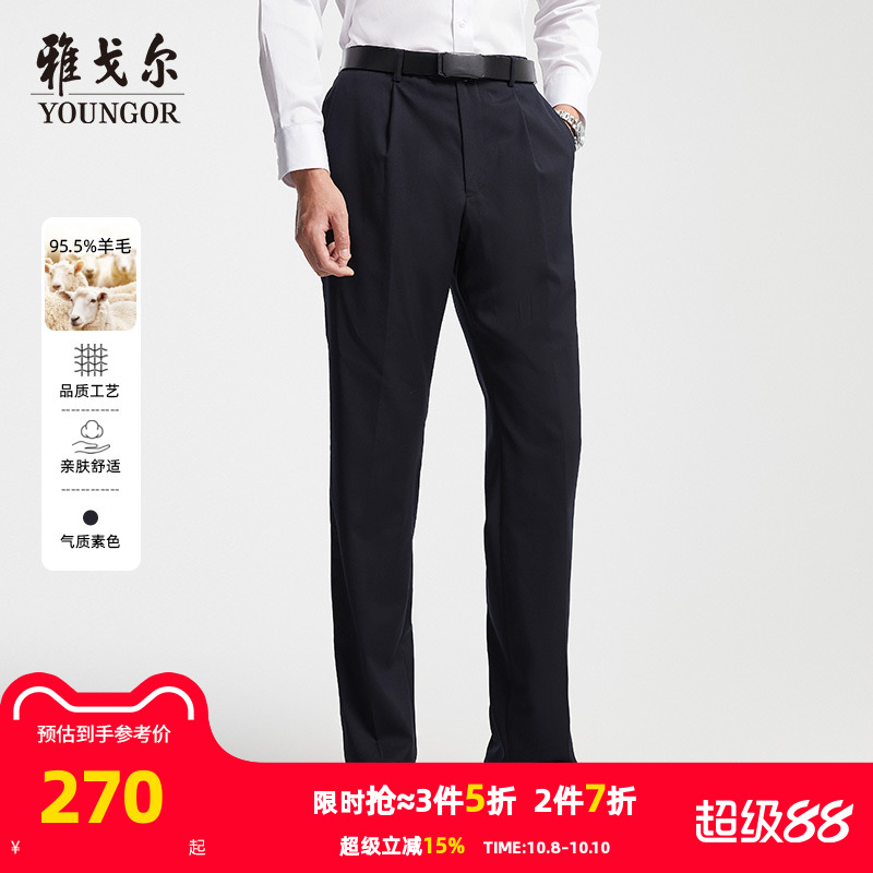 雅戈尔西裤新款官方商务时尚羊毛藏青正装上班长西服裤子男4376