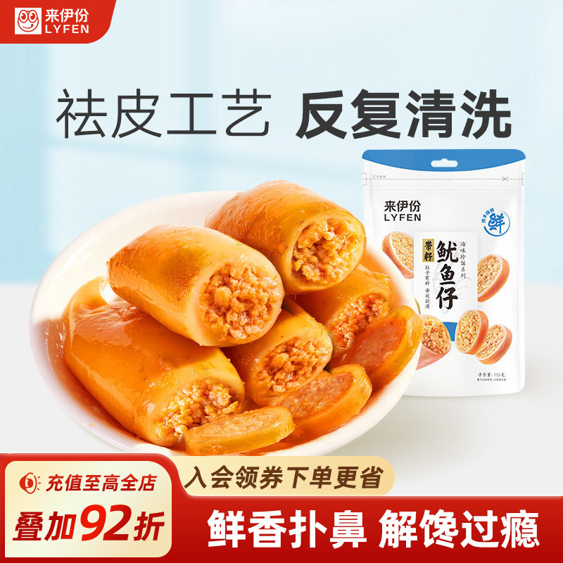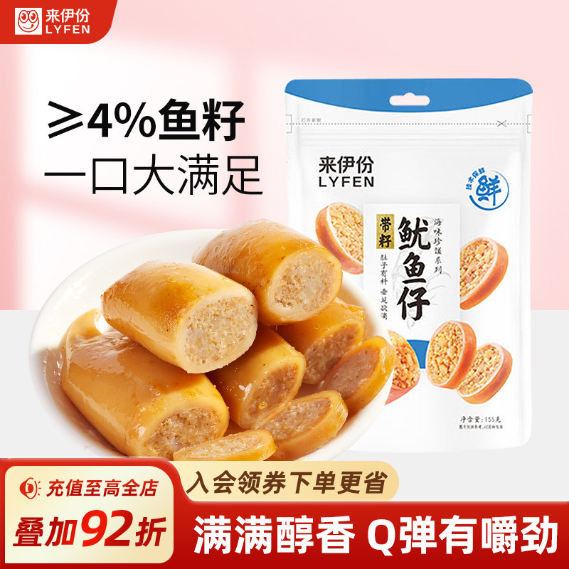 来伊份带籽鱿鱼仔155g海鲜小吃开袋即食食品休闲零食深海满籽鱿鱼