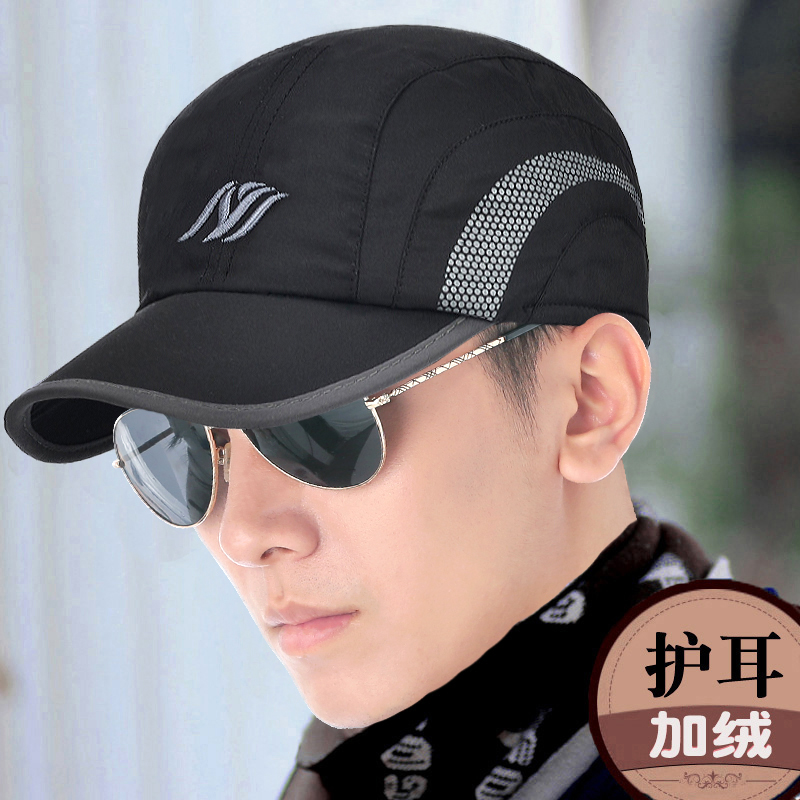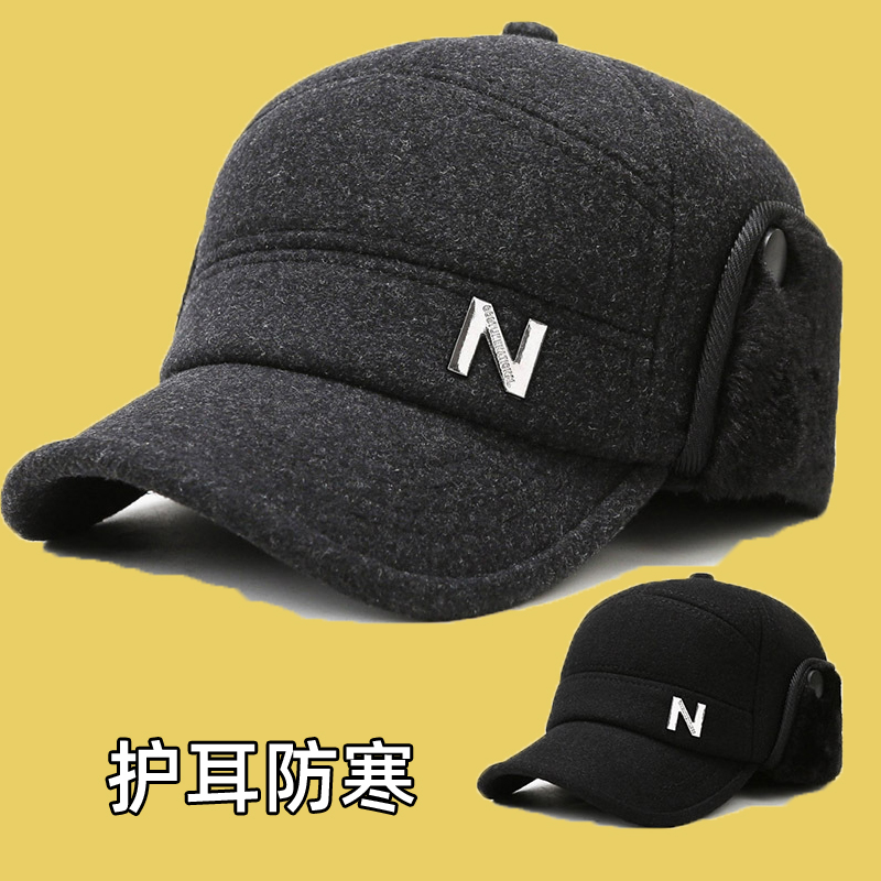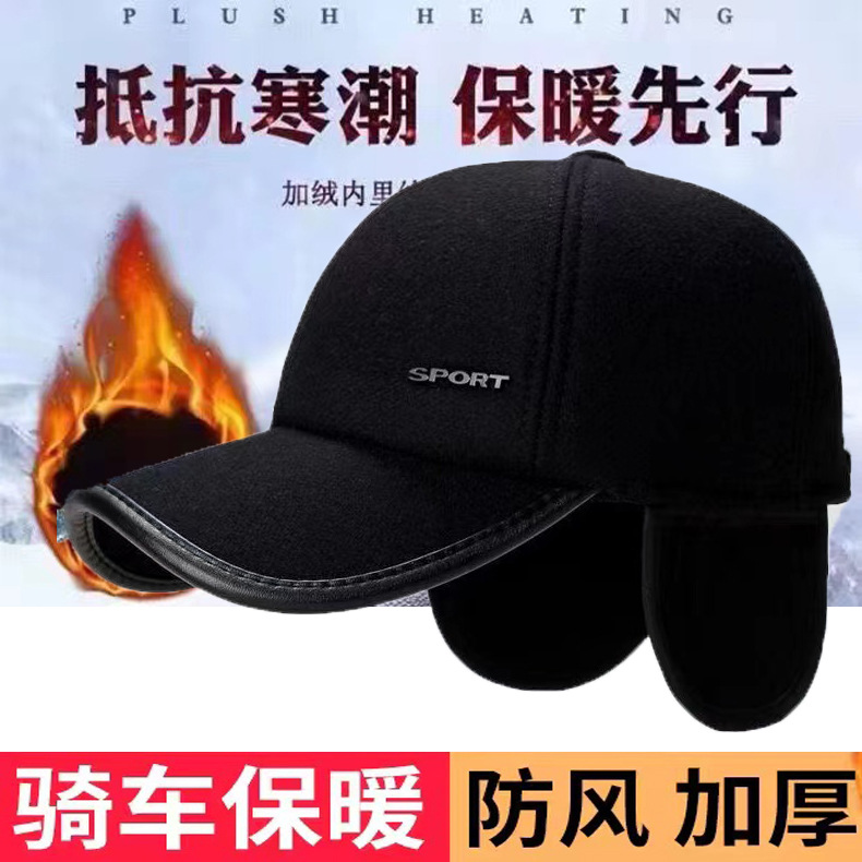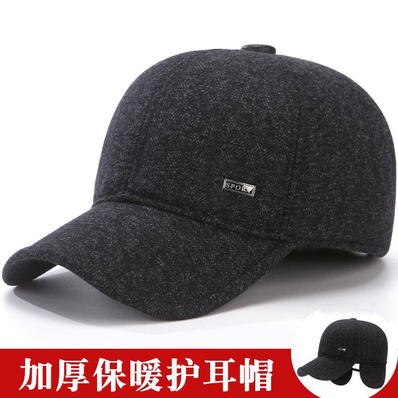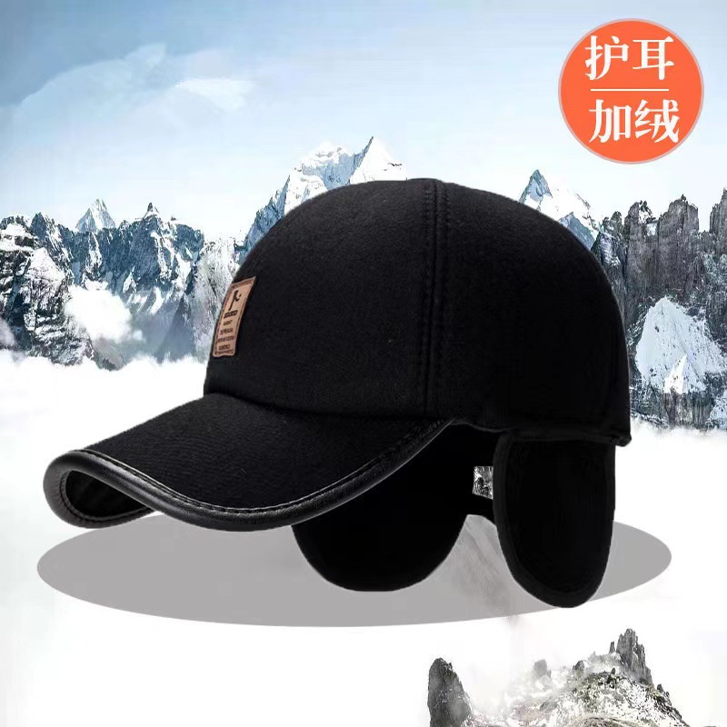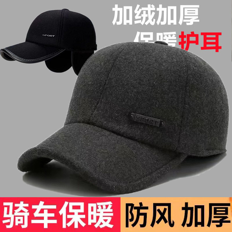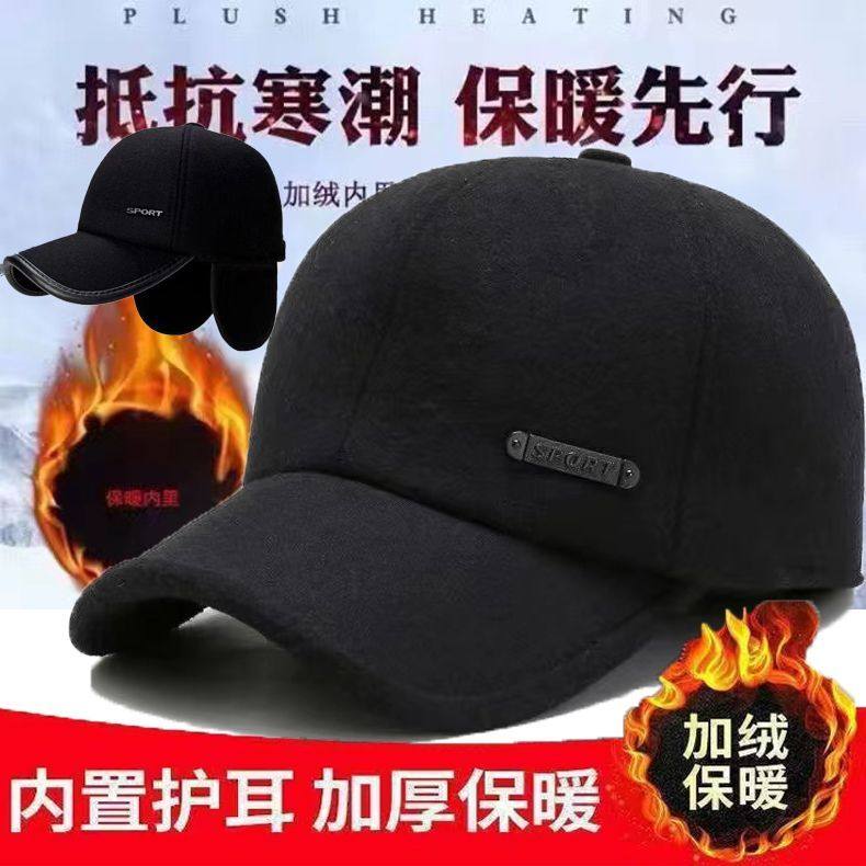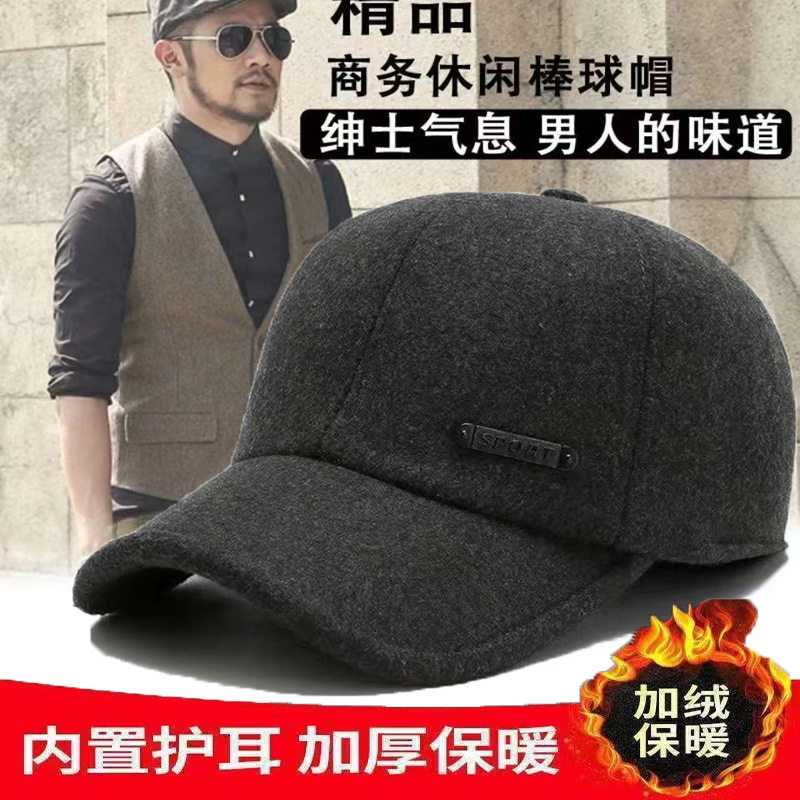 秋冬季帽子男韩版休闲棒球帽护耳加绒保暖鸭舌帽中年冬天男帽棉帽