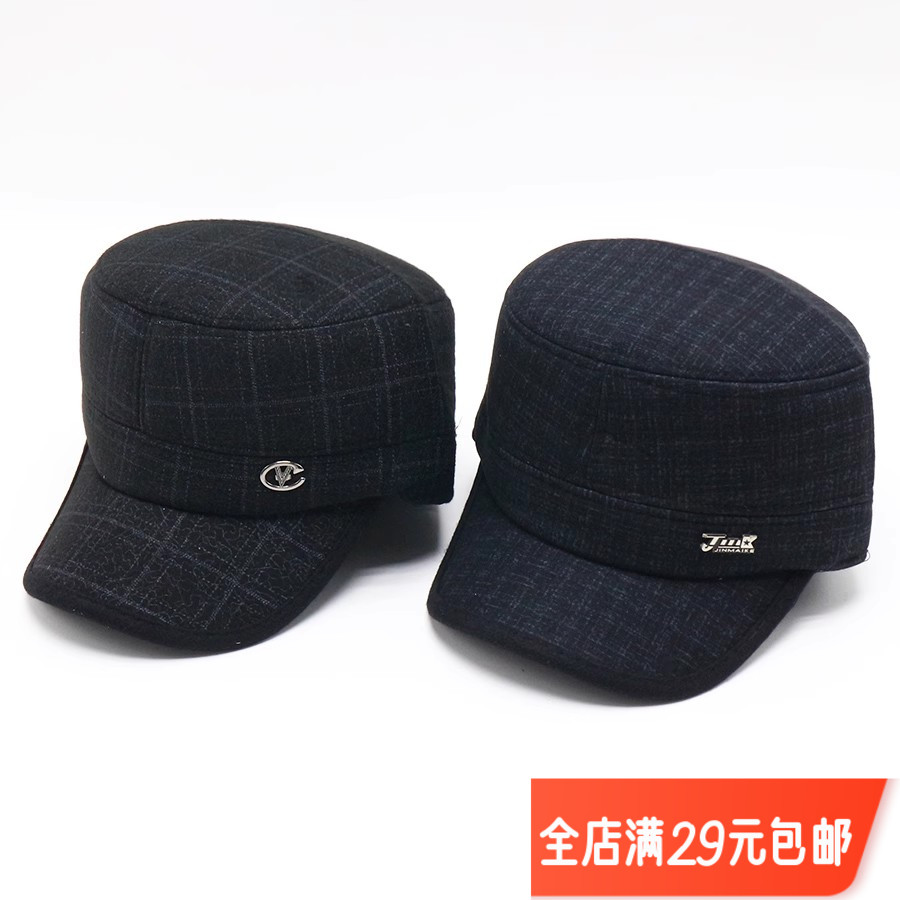 秋冬天中老年平顶帽子男士防风保暖鸭舌帽老头老人帽中年爸爸棉帽