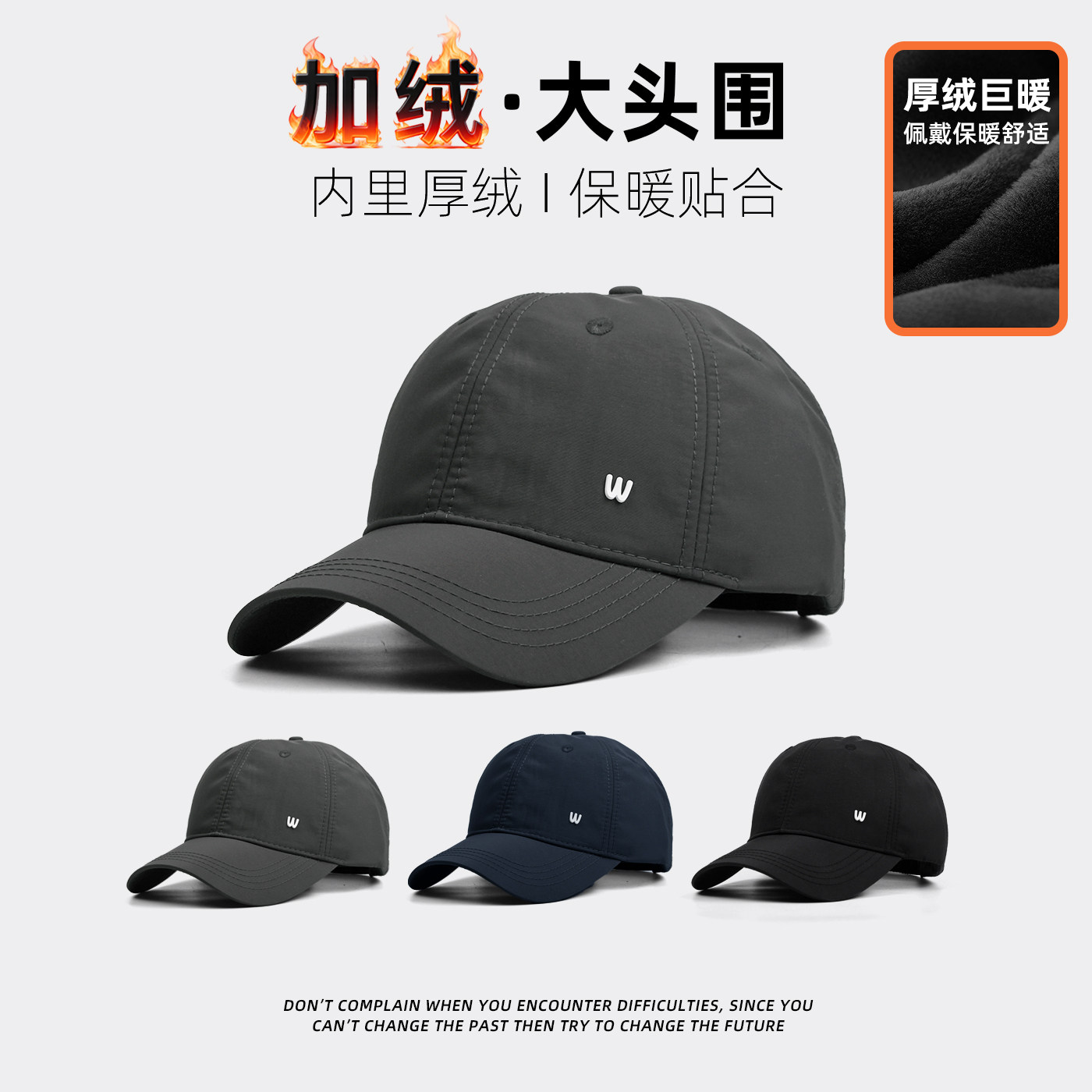 大头围加绒加厚冬天帽子男士冬季鸭舌帽棒球帽中年爸保暖防风防寒