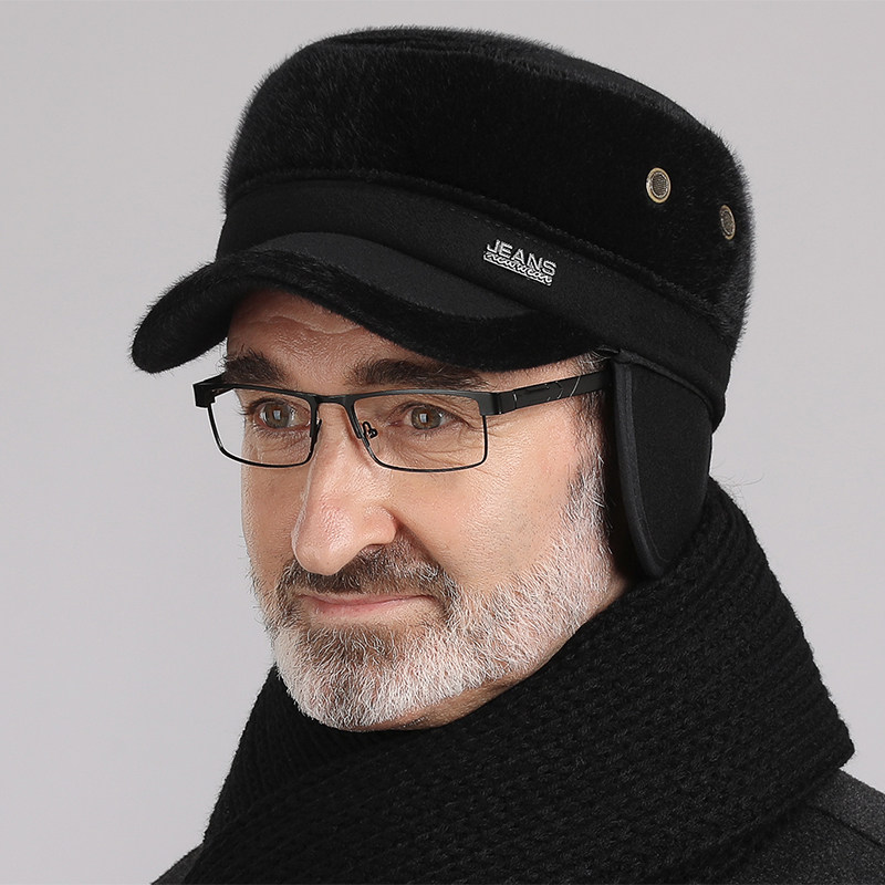 老年人帽子男冬天加厚保暖平顶帽中年护耳爷爷爸爸老头鸭舌帽棉帽