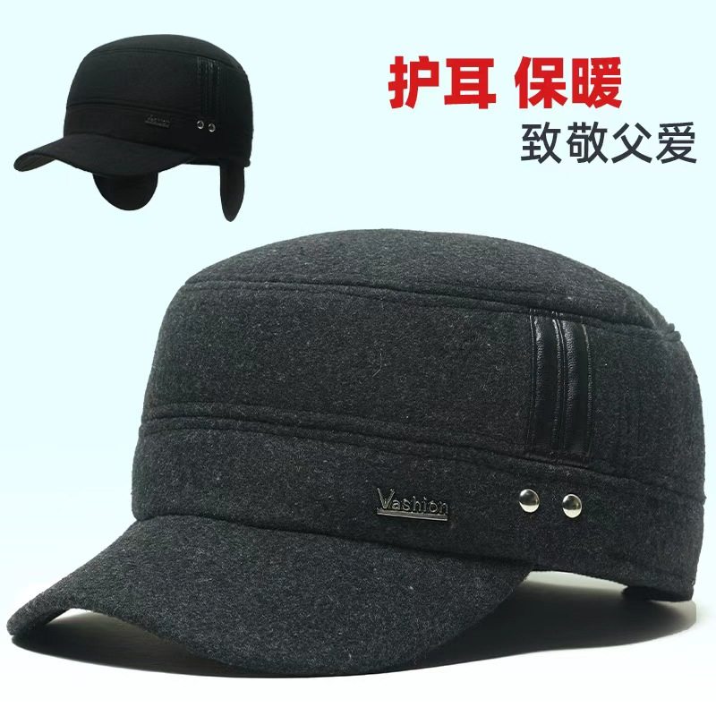 老人帽子男士冬天中老年人秋冬季中年保暖爸爸爷爷老头平顶鸭舌帽