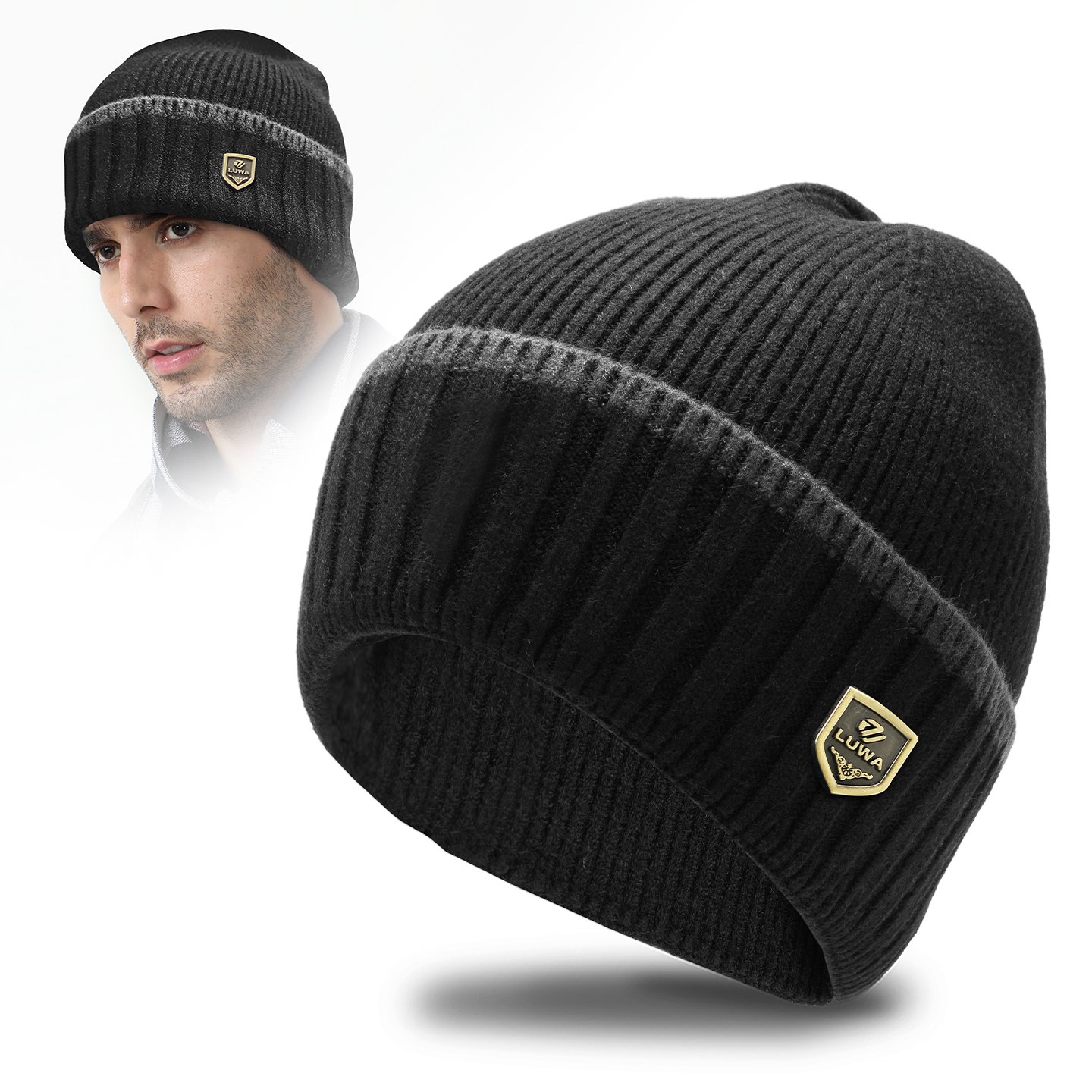路瓦帽子冬天防寒毛线帽男包头中年户外加厚保暖运动针织帽高弹力