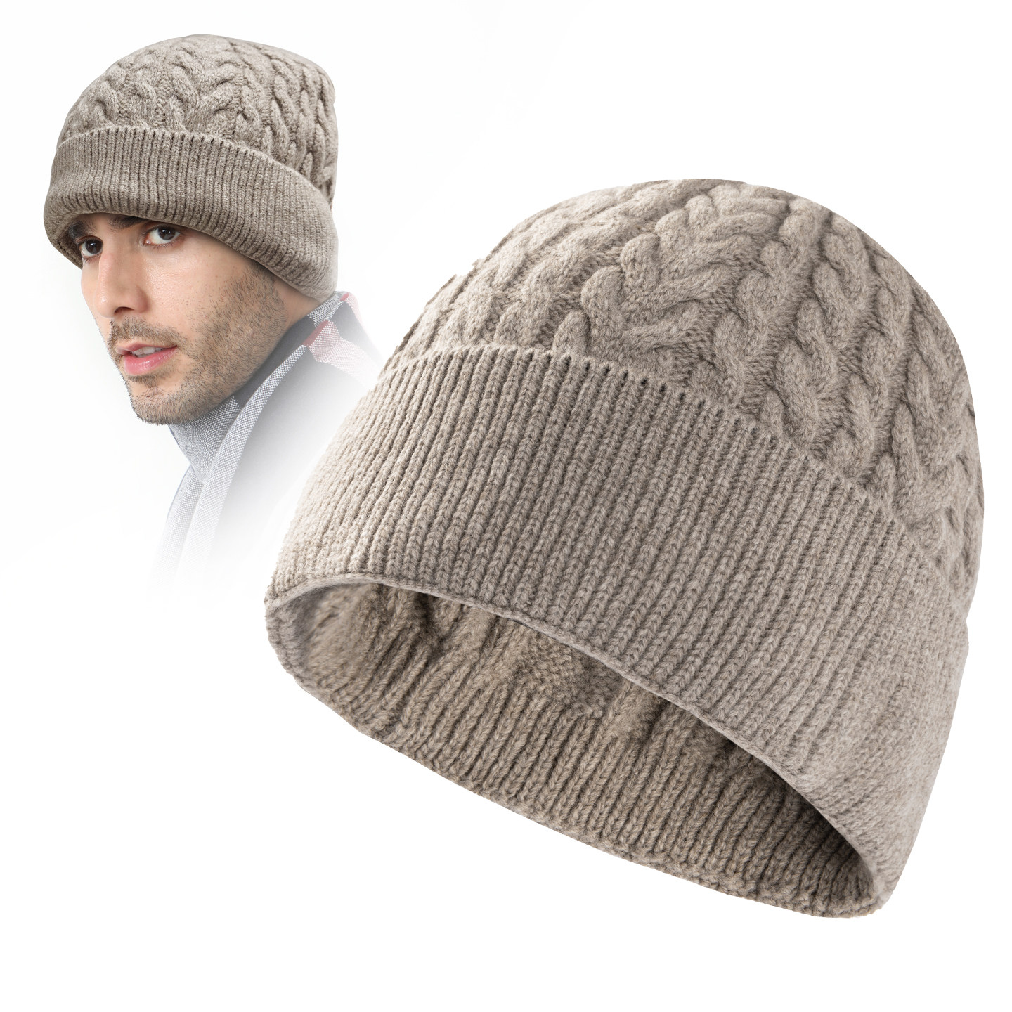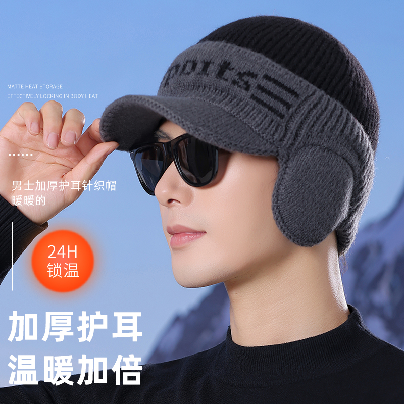 羊毛帽子男冬天中老年中年东北帽针织毛线棉帽保暖户外加厚鸭舌帽