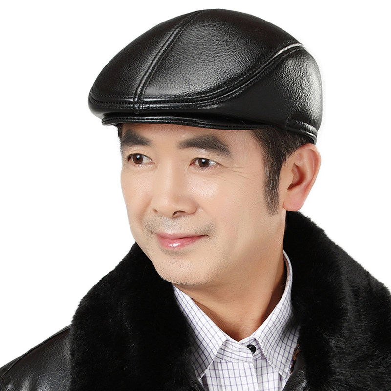 真皮鸭舌帽秋冬天中老年人帽老人帽子男冬季中年保暖老头爷爷棉帽