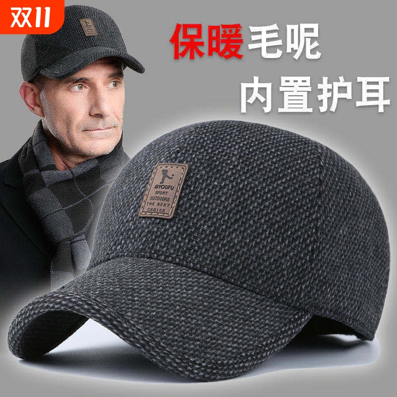 帽子男士冬天中老年保暖毛呢棒球帽秋冬季中年爸爸老人护耳鸭舌帽