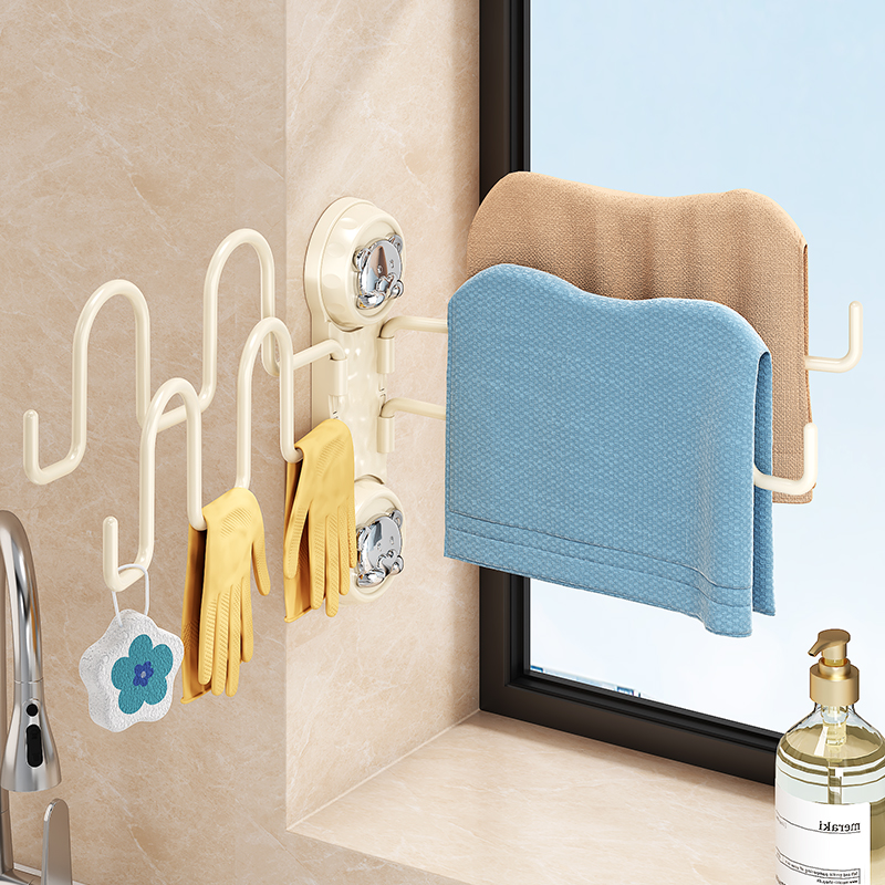 吸盘旋转抹布架厨房壁挂多杆沥水架置物架毛巾海绵挂架多功能挂杆