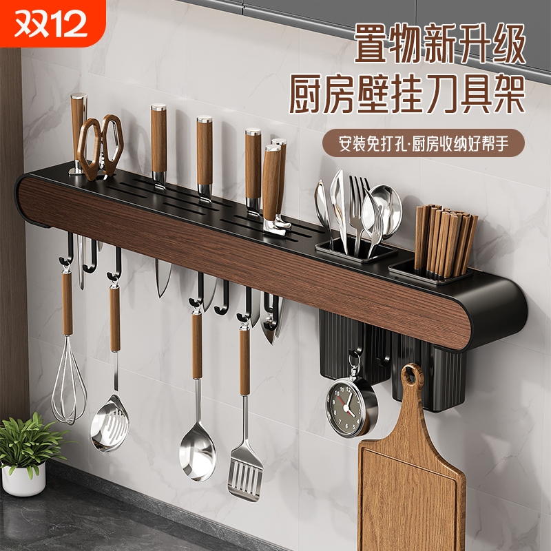 高颜值厨房壁挂式刀架子筷桶筷笼筷筒一体免打孔多功能置物架挂墙