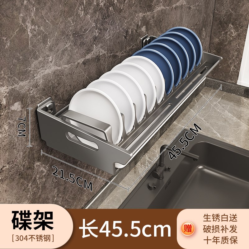 304不锈钢免打孔厨房壁挂墙上一体式碗碟沥水架餐具收纳置物架