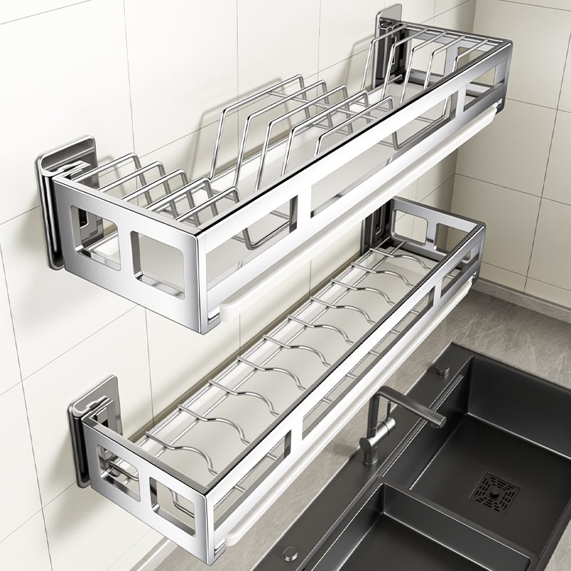 304不锈钢厨房壁挂式置物架碗碟收纳层架水槽上墙沥水盘子挂壁架