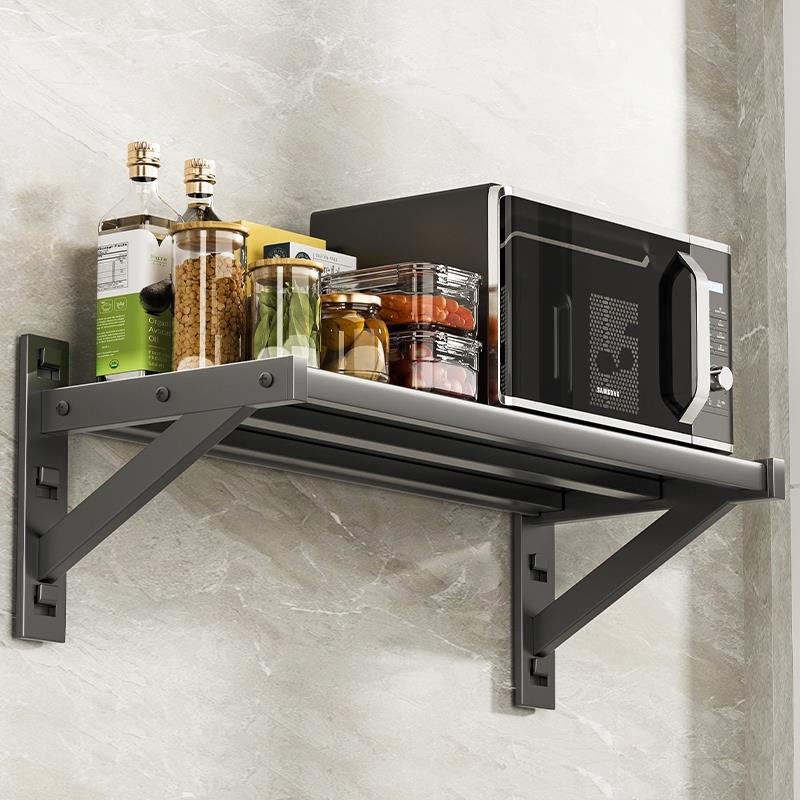 黑色太空铝微波炉托架置物架厨房壁挂式壁挂架加厚架子壁挂平板架