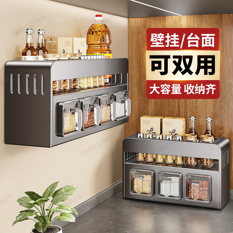 厨房壁挂收纳架多层调料盒置物架大容量台面储物架厨房收纳置物架