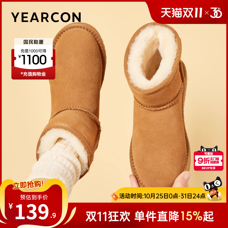 意尔康女鞋2025冬季加绒保暖棉鞋厚底短筒雪地靴户外休闲短靴复古