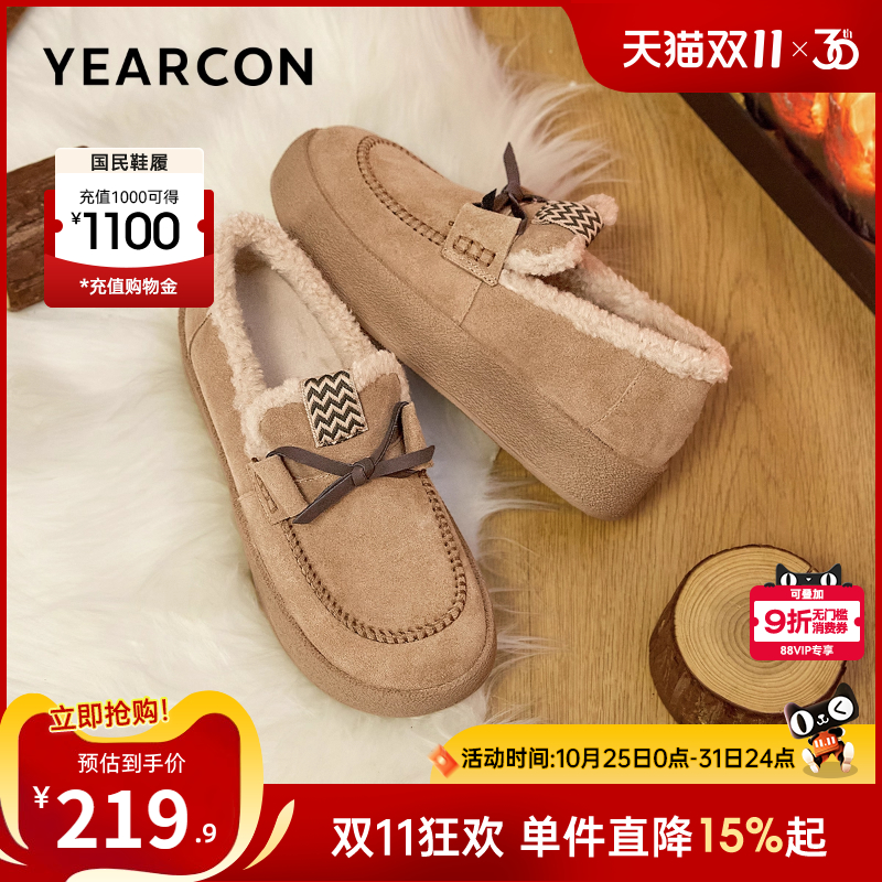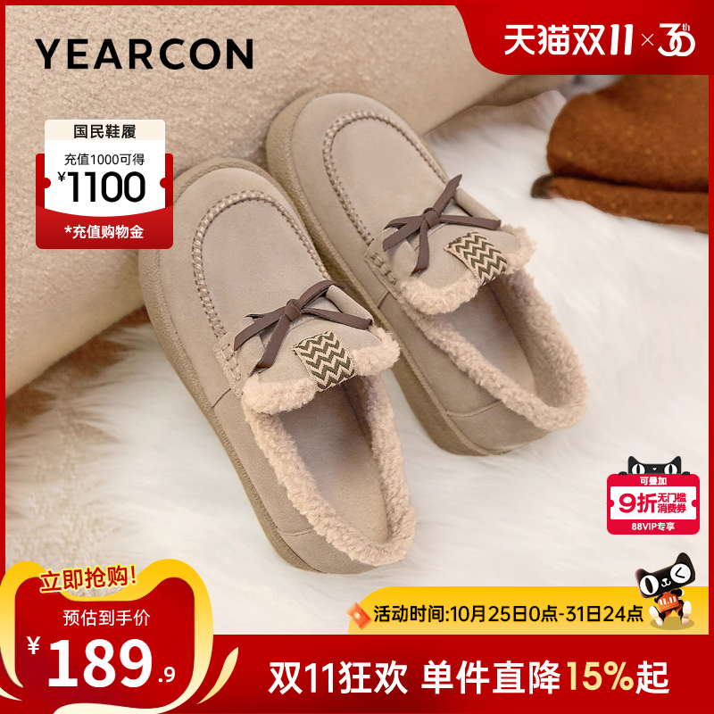 意尔康女鞋2025冬季加绒保暖全包勃肯鞋休闲毛毛鞋平底雪地靴棉鞋