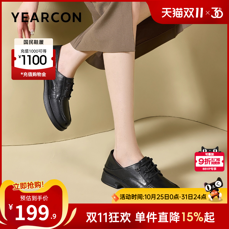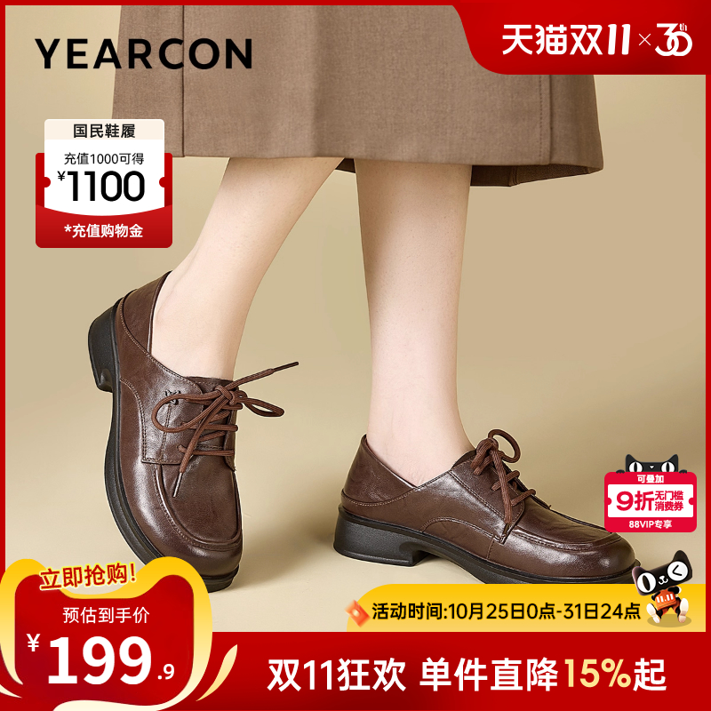 意尔康女鞋2025秋季真皮单鞋英伦风小皮鞋深口乐福鞋通勤工作鞋