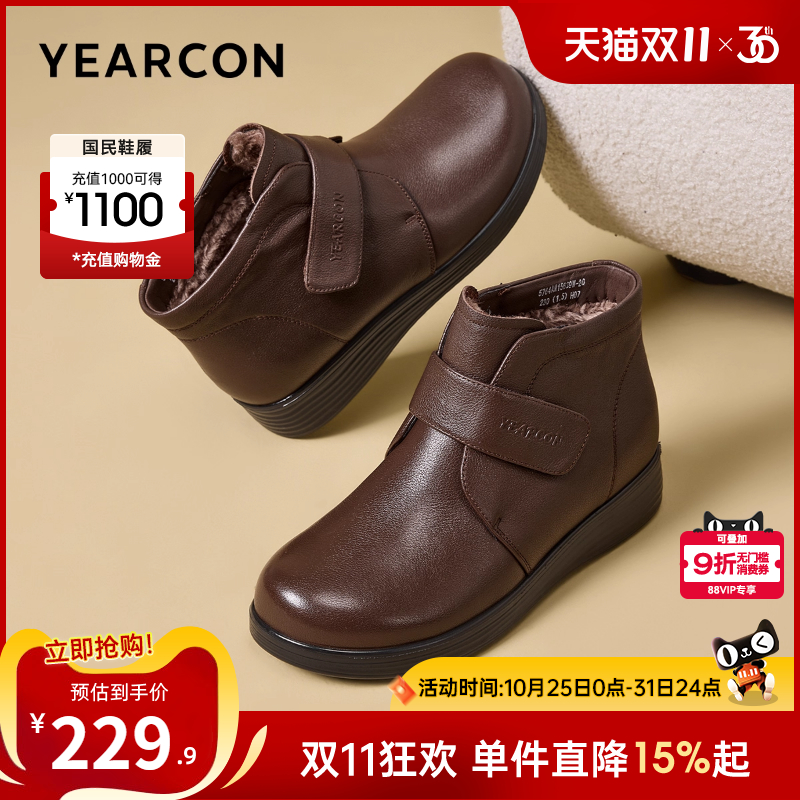 意尔康女鞋2025冬季短靴真皮短筒皮靴中老年妈妈棉鞋加绒保暖皮鞋