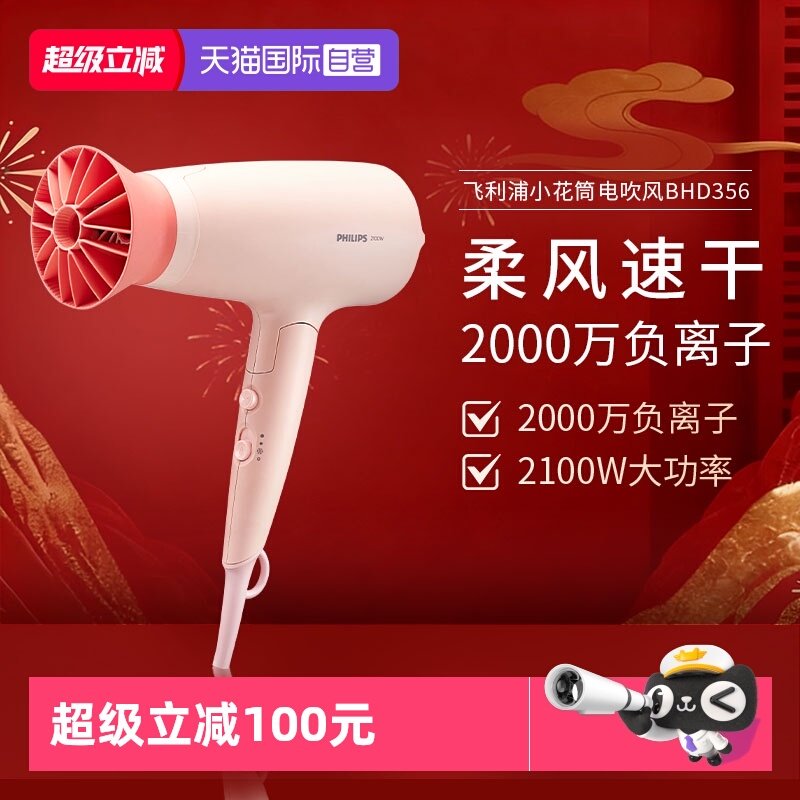 飞利浦电吹风机家用负离子护发速干大功率新款吹风筒不伤发BHD356