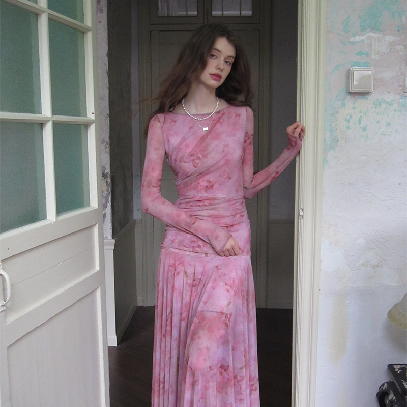 - 透视长裙连衣裙