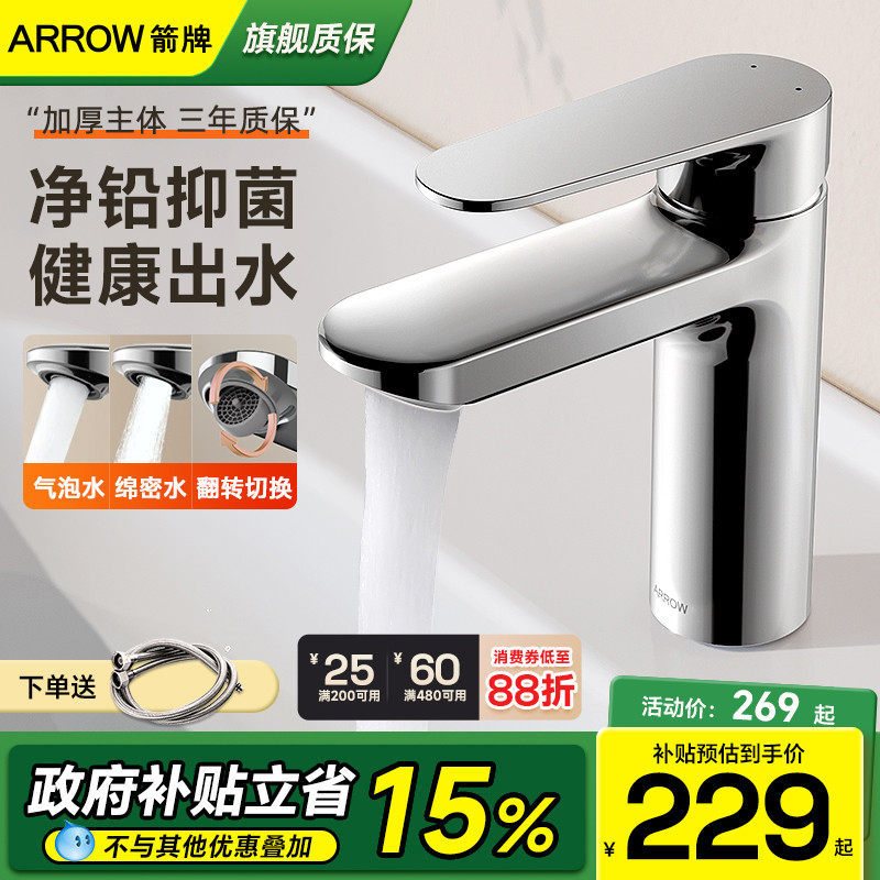 箭牌全铜浴室洗脸池洗手盆卫生间台上盆家用单孔冷热洗脸盆水龙头