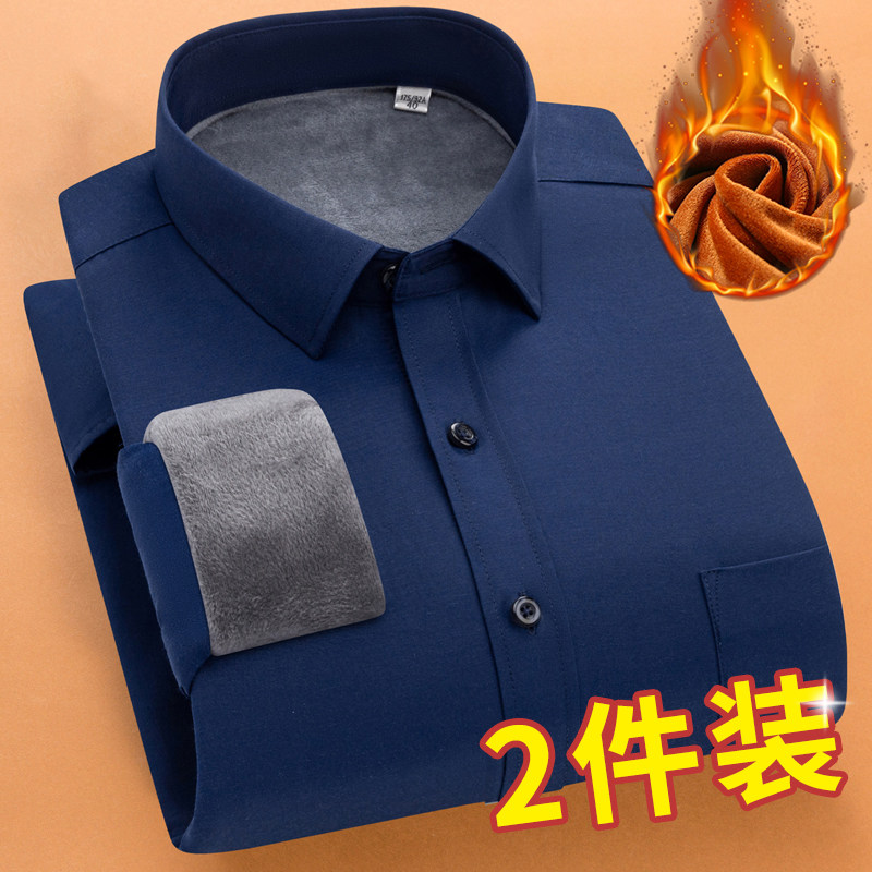 啄木鸟冬季男士保暖衬衫加绒加厚长袖中老年免烫抗皱休闲纯色衬衣