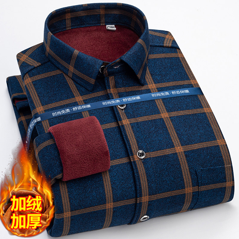 【山羊绒】加绒加厚男士保暖衬衫长袖冬季款爸爸抗皱免烫衬衣格子