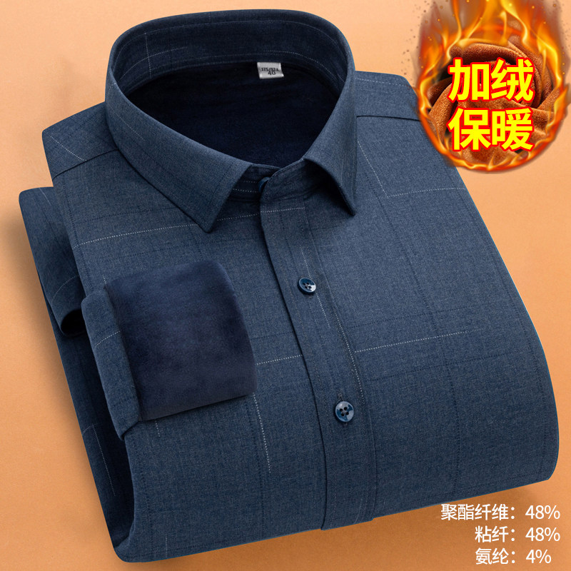 秋冬新款男士保暖衬衫长袖加绒加厚中年商务休闲带绒衬衣大码男装