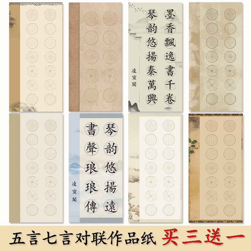 四尺对开对联宣纸蜡染瓦当五言七言手写空白免装裱卷轴毛笔字练习纸半生熟书法专用作品纸万年红楹联挂轴竖轴
