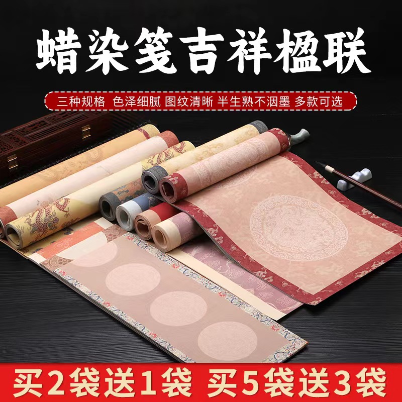 微喷蜡染对联宣纸七言对联纸四尺对开五言七言蜡染瓦当宣纸学生书法双排作品纸毛笔字半生半熟作品纸专用宣纸