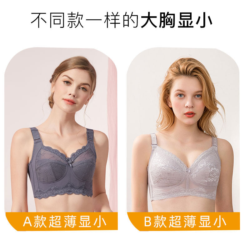 显胸小内衣女夏季薄款bra大胸显小无钢圈无海绵文胸大码超薄胸罩
