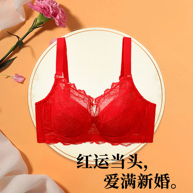 显胸小内衣女薄款红色结婚新娘女士蕾丝胸罩2024新款本命年文胸罩