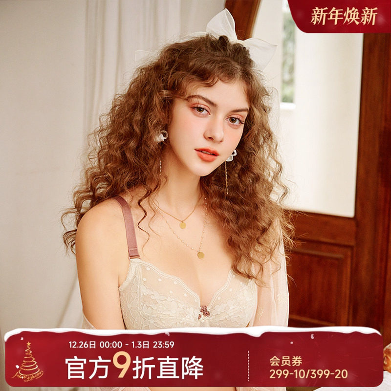 宝诗嫣法式显胸小内衣女超薄款大胸显小文胸蕾丝收副乳调整型胸罩