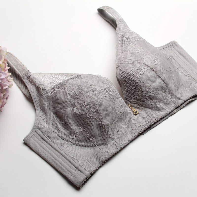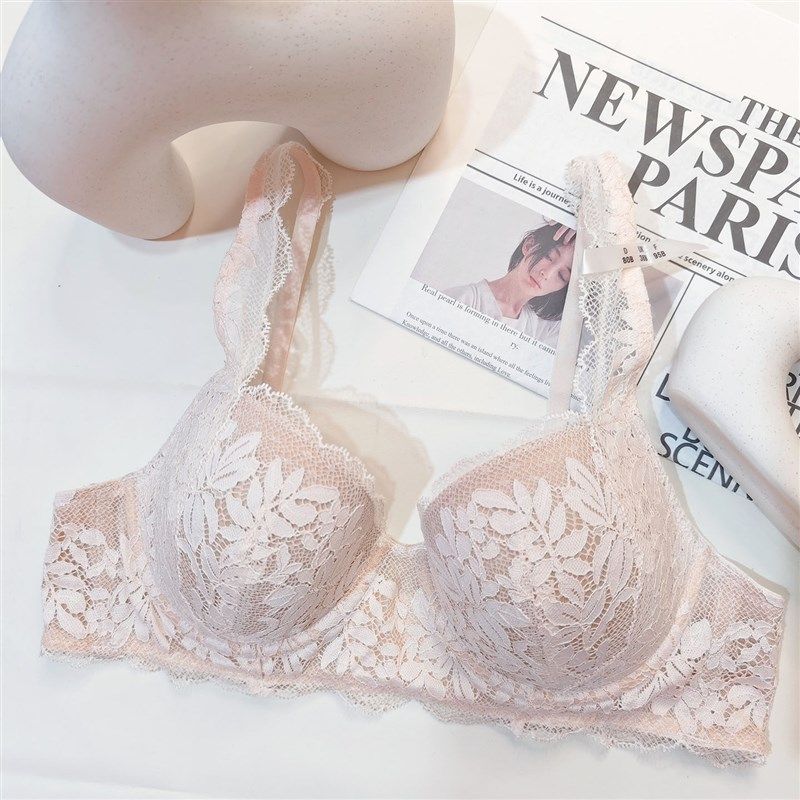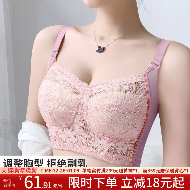 新款加大码超薄款无钢圈文胸罩蕾丝性感聚拢防下垂显胸小内衣胖mm